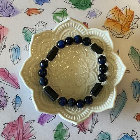 Blue Tiger Eye and Black Tourmaline Strength Crystal Gemstone Bracelet - Handcrafted By CALA Designs