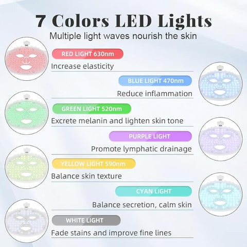 7. White Light: 460+520+630nm firms the face and reduces dark spots.